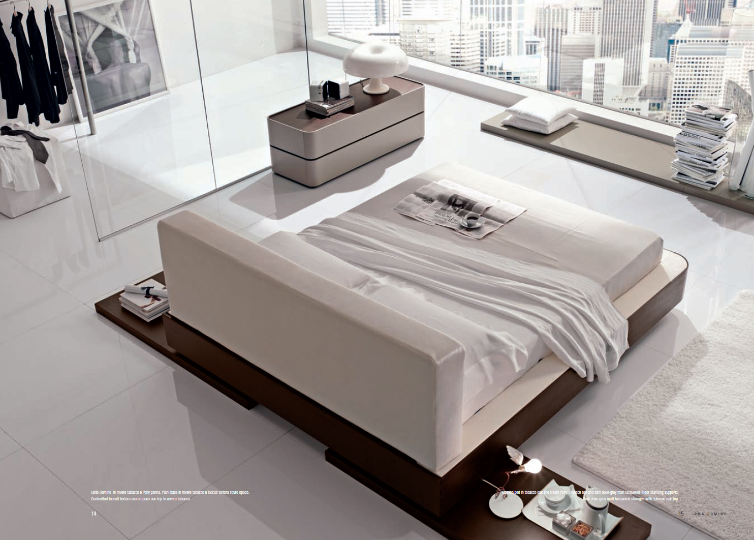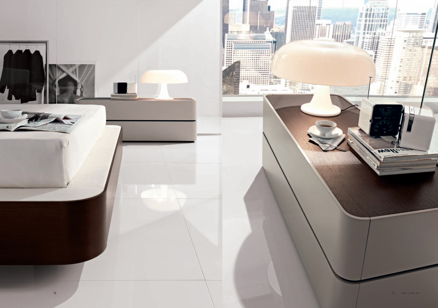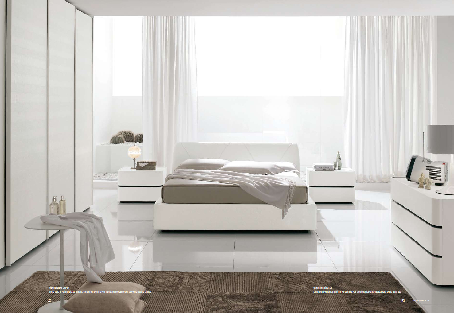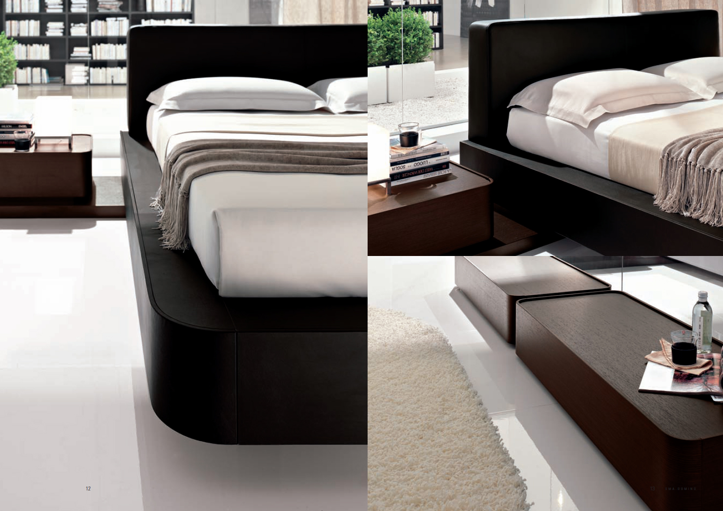 Спальня фабрики СМА Домино плюс SMA Domino Plus. Кровать на верхнем рисунке - STRiP, отделка кровати выполнена из кожи, тумбочки серии DOMINO, на нижних рисунках кровать DOMINO.