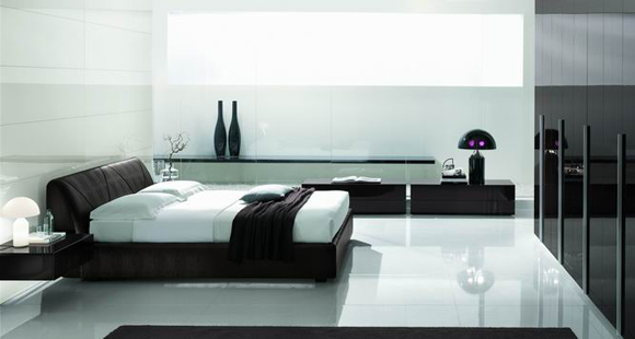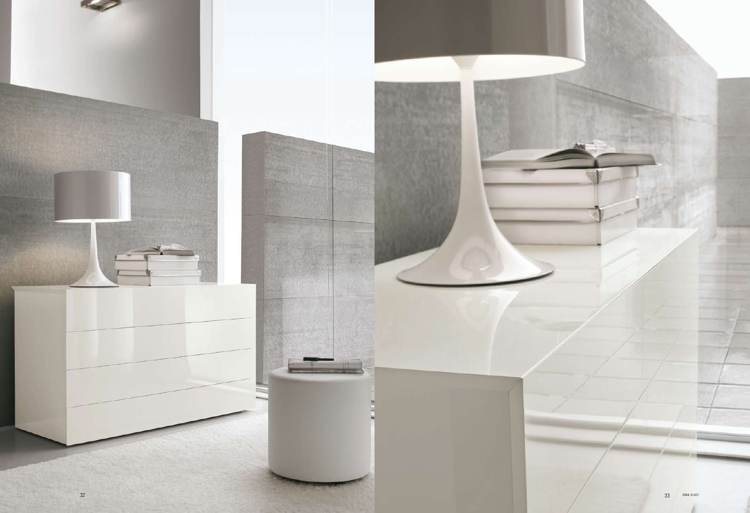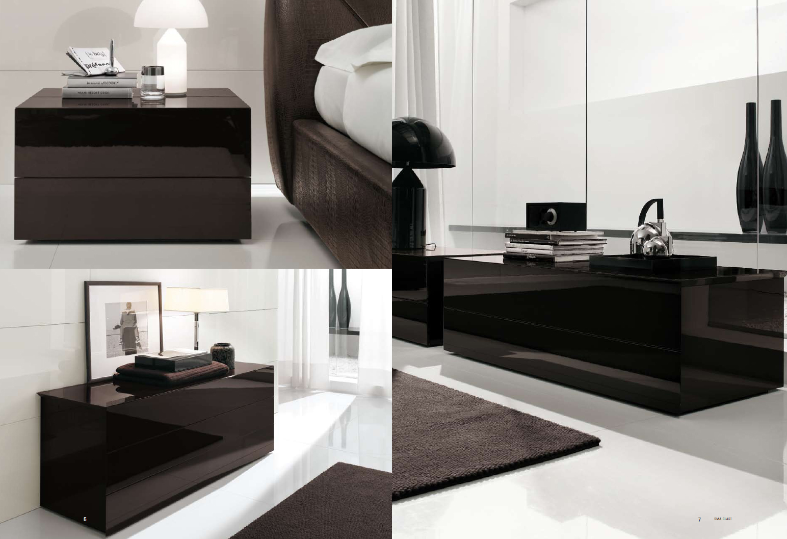 Спальня СМА SMA Glast. Различные варианты тумбочек и комодов в лакированном чёрном и белом цветах.